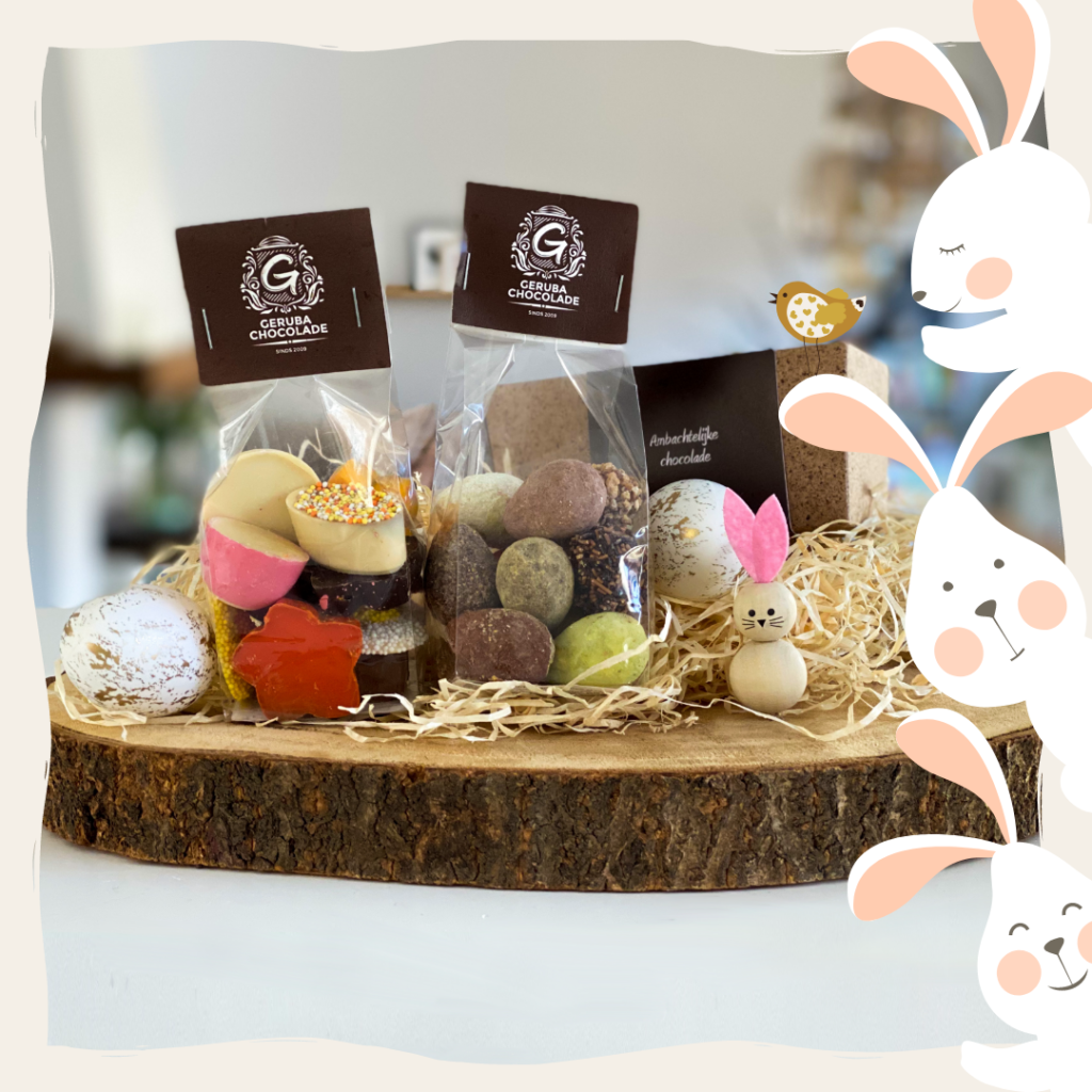 - Een zakje gevuld met paaseitjes, voorjaarschocolade